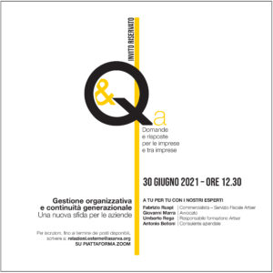 Continuità generazionale sì, ma come? Ne parliamo con gli esperti mercoledì 30 giugno in occasione del quinto appuntamento con i focus group del ciclo Q&A. Ritrovo sempre sulla piattaforma Zoom con un numero ristretto di aziende (prenotati subito!) per discutere insieme di un tema caldissimo.